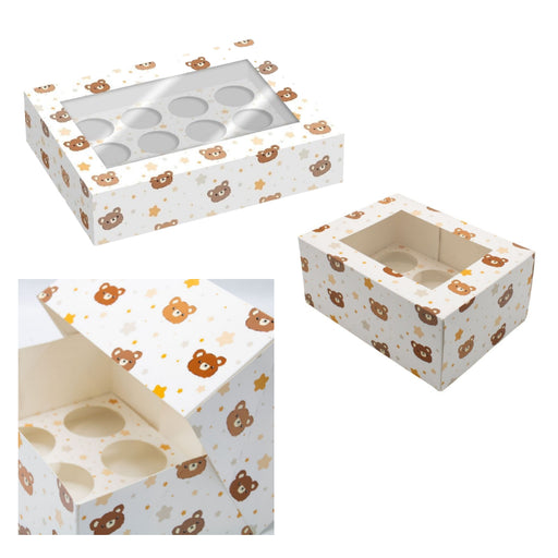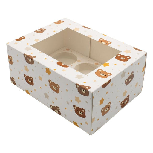 View full detailsWhite cupcake box with a teddy bear and star pattern design - available in holds 6 and holds 12 cupcakes Features a clear PVC window for eye-catch...