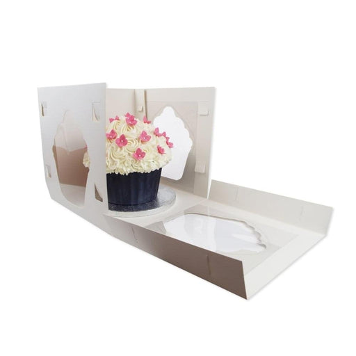 Place your cakes and giant cupcakes in this White Satin Finish Giant Cupcake Box. The box is extra deep allowing up to a 2 tier cake with dec...