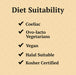 Suitable for the following diets: Coeliac, Ovo-lacto vegetarians, Vegans, Halal, Kosher.